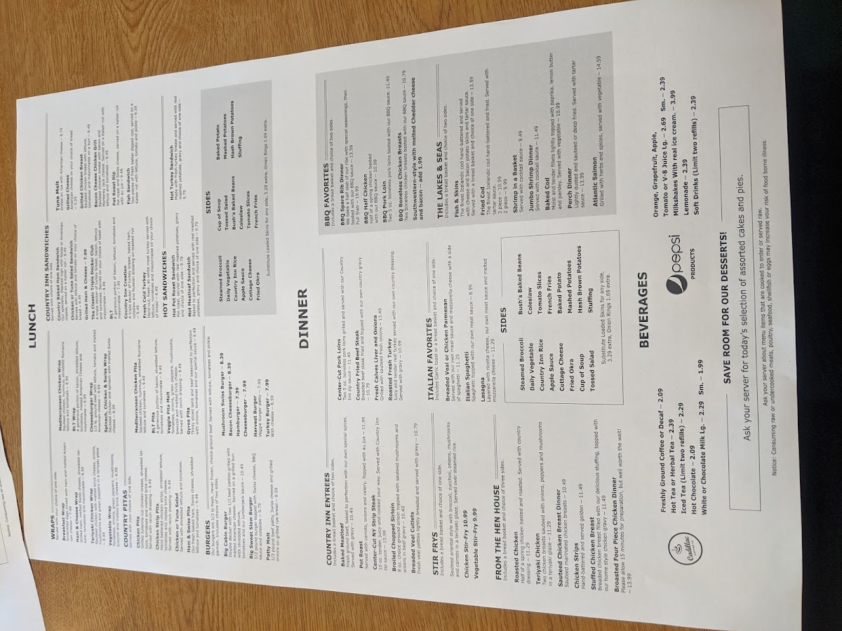 The menu at Country Inn offers a straightforward and comforting selection that fits perfectly with its warm, family-friendly atmosphere. Whether you're stopping by for a hearty breakfast, a casual lunch, or a satisfying dinner, you'll find familiar, well-prepared dishes designed to feel like a welcoming meal at home.